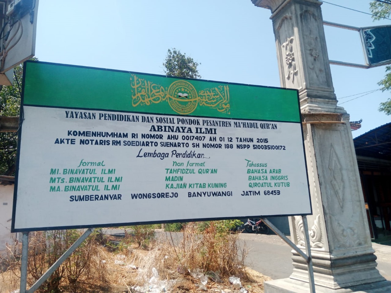 (AY7582) YAYASAN PENDIDIKAN DAN SOSIAL PONDOK PESANTREN MAHADUL QURAN ABINAYA ILMI Jln. Merapi, -, Kec. Wongsorejo, Kab. Banyuwangi Prov. Jawa Timur
