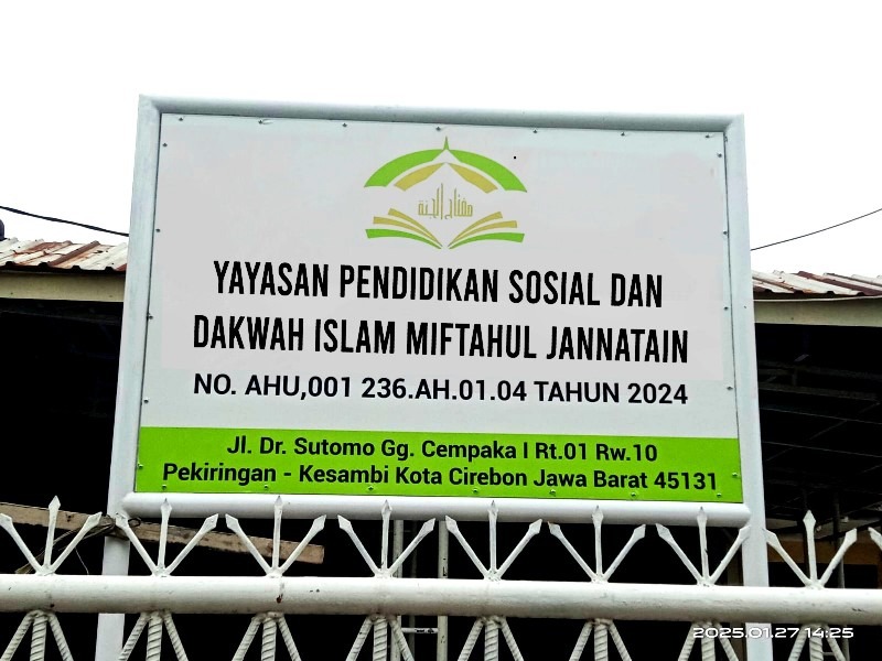 (AY8265) PENDIDIKAN SOSIAL DAN DAKWAH ISLAM MIFTAHUL JANNATAIN JL. Dr, Sutomo Gg. Cempaka 1, -, Kec. Kesambi, Kota Cirebon Prov. Jawa Barat