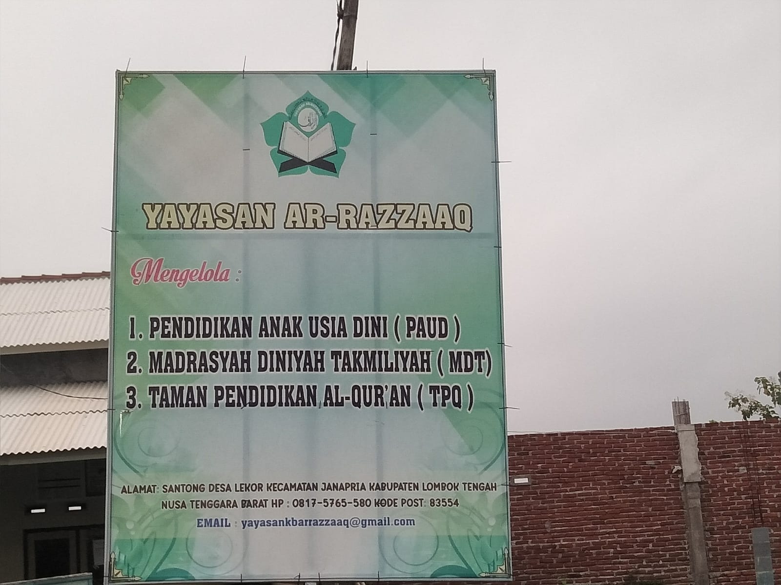 (AY0058) YAYASAN AR RAZZAAQ SANTONG DESA LEKOR Dusun Santong Desa Lekor, -, Kec. Janapria, Kab. Lombok Tengah Prov. Nusa Tenggara Barat