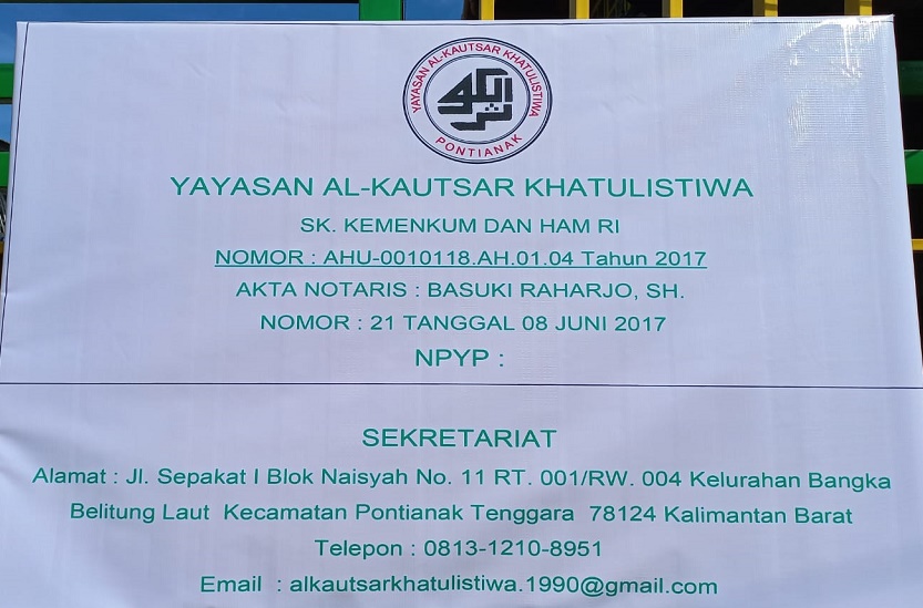 (AZ4389) YAYASAN AL-KAUTSAR KHATULISTIWA Jalan Sepakat I Blok Naisyah No.11, -, Kec. Pontianak Tenggara, Kota Pontianak Prov. Kalimantan Barat