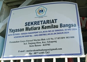 (AZ1974) Yayasan Mutiara Kemilau Bangsa Perumahan Gesya Eternal Marina Blok A22 No.17, -, Kec. Sekupang, Kota Batam Prov. Kepulauan Riau