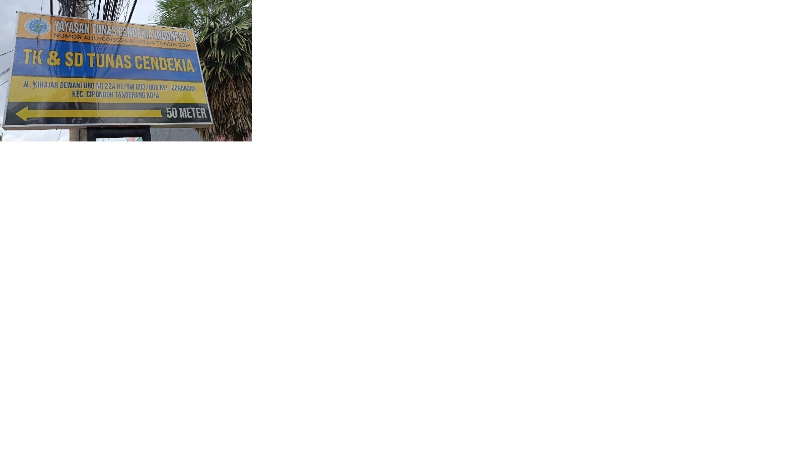 (AY3417) YAYASAN PENDIDIKAN TUNAS CENDIKIA INDONESIA Jl. Ki Hajar Dewantoro No. 22A , -, Kec. Cipondoh, Kota Tangerang Prov. Banten