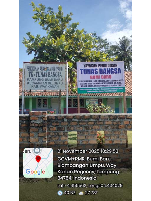 (AZ4497) YAYASAN PENDIDIKAN TUNAS BANGSA BUMI BARU Bumi Baru, -, Kec. Blambangan Umpu, Kab. Way Kanan Prov. Lampung