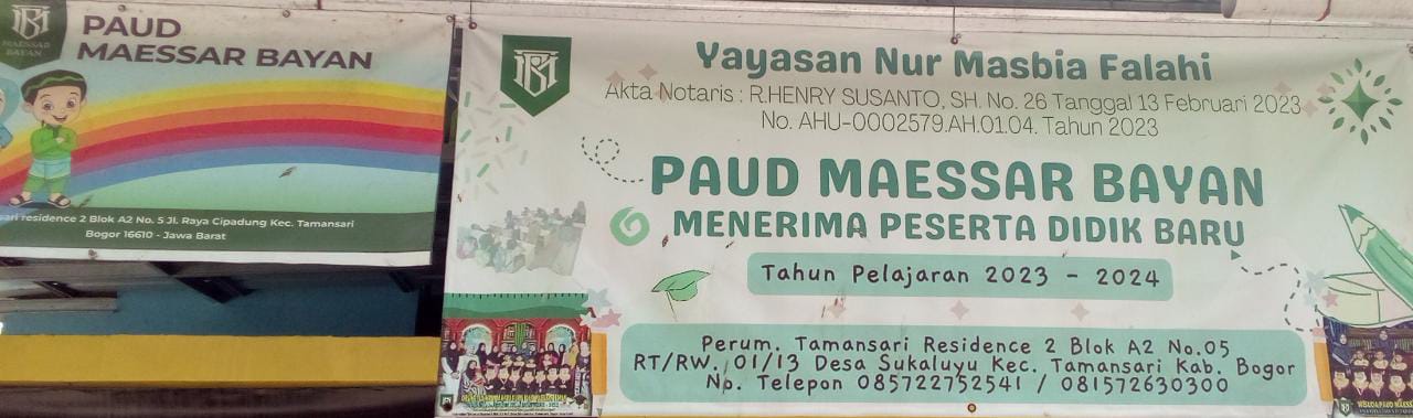 (AY0920) YAYASAN NUR MASBIA FALAHI PERUM. TAMANSARI RESIDENCE 2 BLOK A2 NO. 05, -, Kec. Tamansari, Kab. Bogor Prov. Jawa Barat