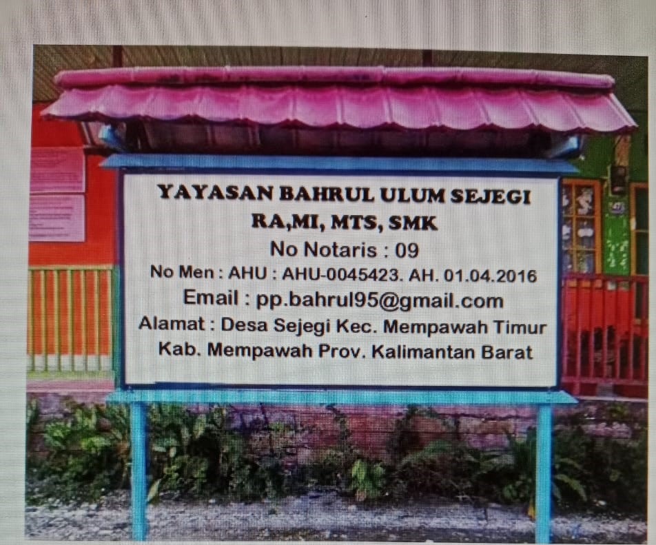 (AY9881) YAYASAN BAHRUL ULUM SEJEGI Dusun Tekam, -, Kec. Mempawah Timur, Kab. Mempawah Prov. Kalimantan Barat