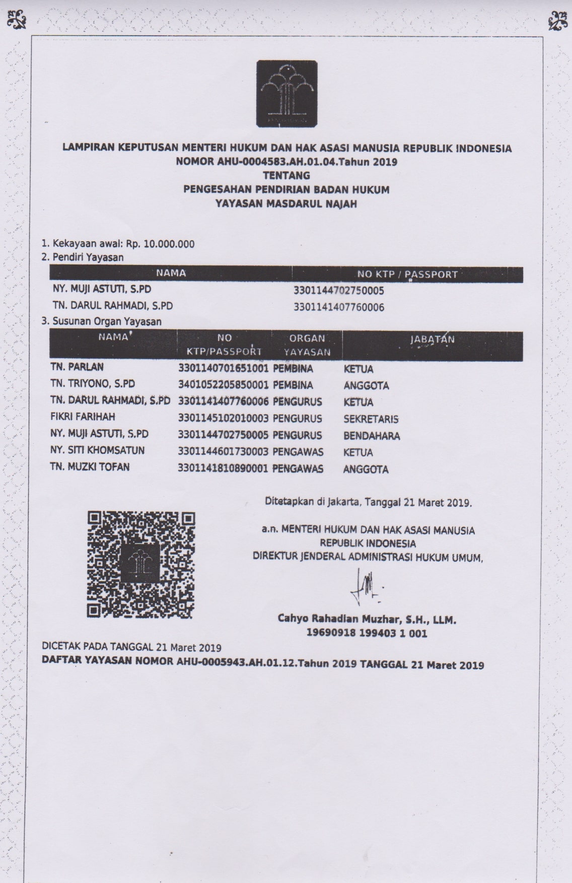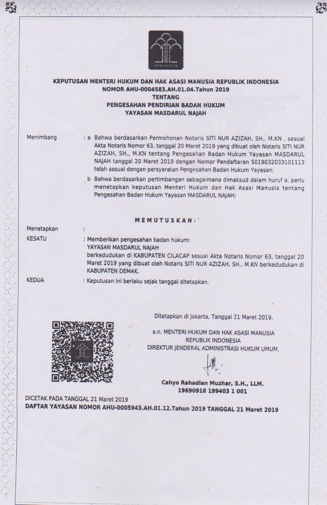 - Tgl SK Pengesahan Badan Hukum Menkumham : 2019-03-21