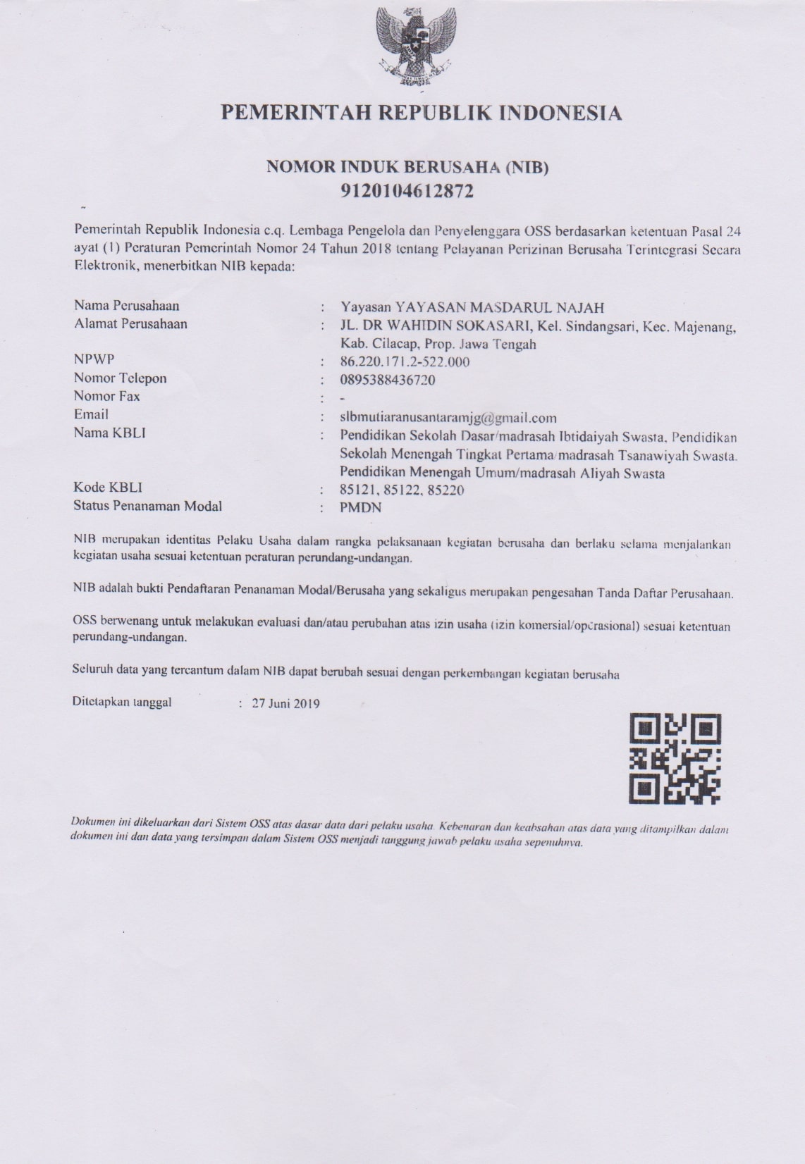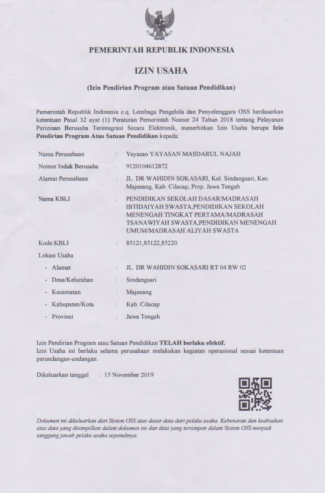 (AW9600) YAYASAN MASDARUL NAJAH Jl. Dr. Wahidin, -, Kec. Majenang, Kab. Cilacap Prov. Jawa Tengah