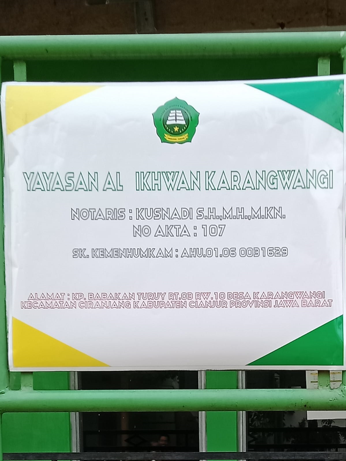 (AY0997) YAYASAN AL-IKHWAN KARANGWANGI KP.BABAKAN TURUY, -, Kec. Ciranjang, Kab. Cianjur Prov. Jawa Barat