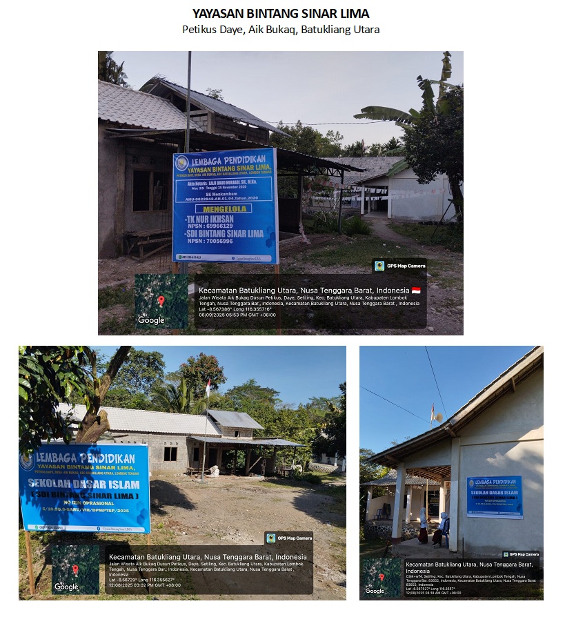 (AZ2009) YAYASAN BINTANG SINAR LIMA Jl. Petikus Daye, -, Kec. Batukliang Utara, Kab. Lombok Tengah Prov. Nusa Tenggara Barat