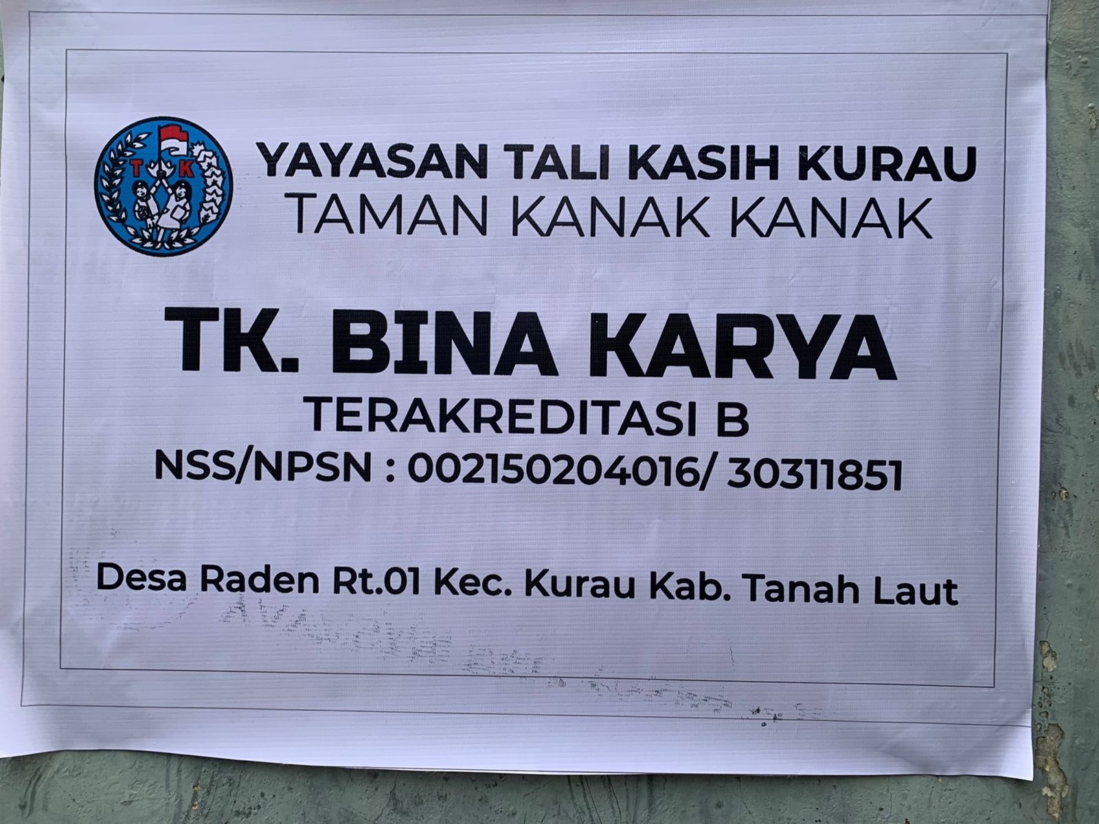 (AX7757) YAYASAN TALI KASIH KURAU DESA RADEN, -, Kec. Kurau, Kab. Tanah Laut Prov. Kalimantan Selatan