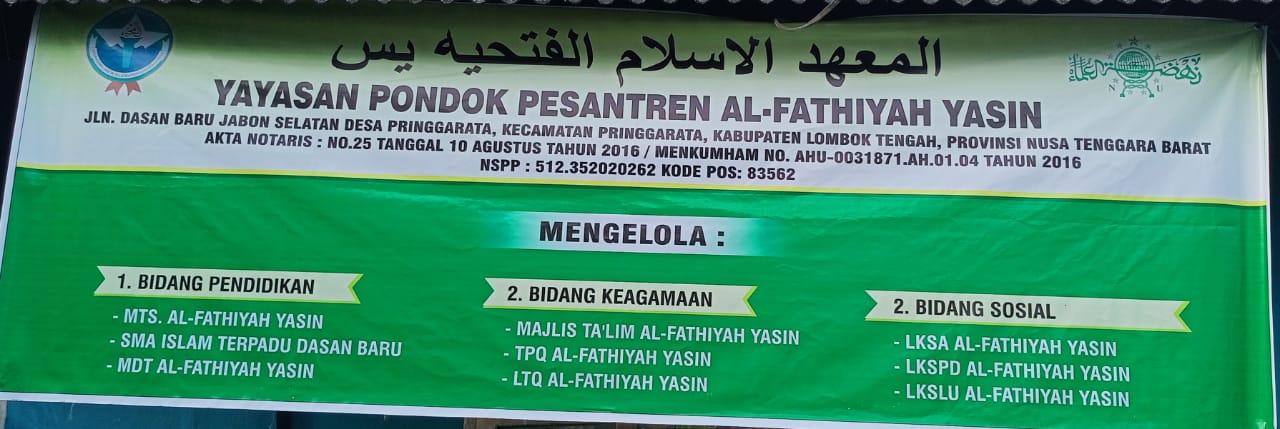 (AX9419) YAYASAN PONDOK PESANTREN AL-FATHIYAH YASIN JABON SELATAN Dusun Dasan Baru Jabon Selatan Desa Pringgarata, -, Kec. Pringgarata, Kab. Lombok Tengah Prov. Nusa Tenggara Barat