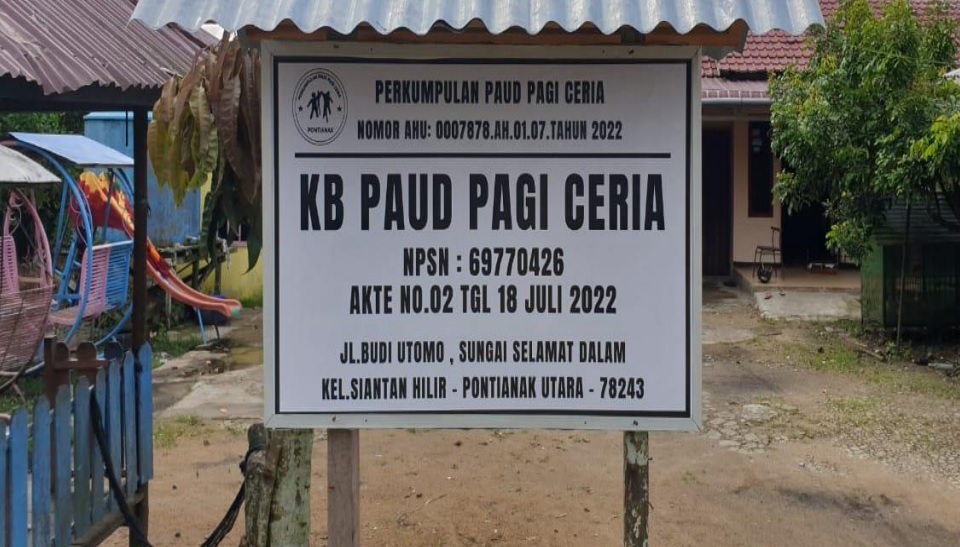 (AX6207) PERKUMPULAN PAUD PAGI CERIA JALAN BUDI UTOMO, SUNGAI SELAMAT DALAM, -, Kec. Pontianak Utara, Kota Pontianak Prov. Kalimantan Barat