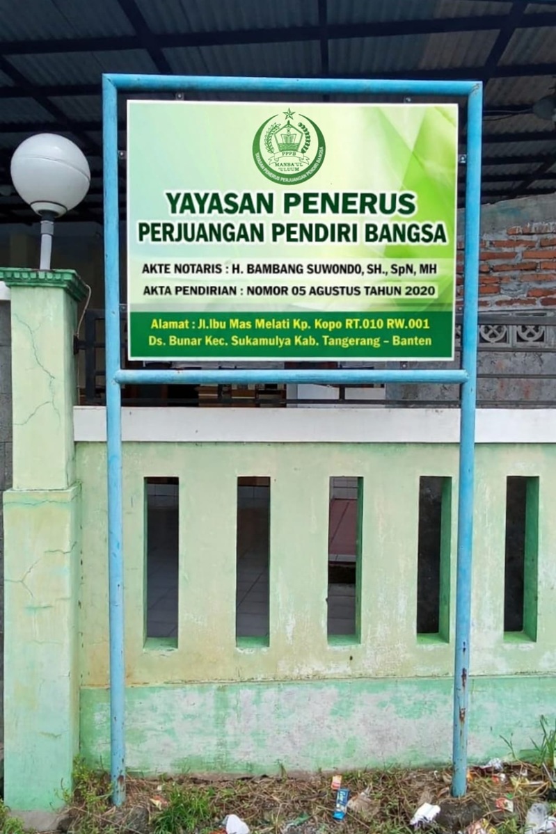 (AZ5339) YAYASAN PENERUS PERJUANGAN PENDIRI BANGSA Jl. Ibu Mas Melati Kp. Kopo, -, Kec. Sukamulya, Kab. Tangerang Prov. Banten