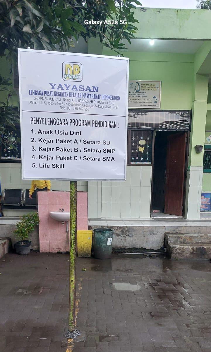 (AZ3047) YAYASAN LEMBAGA PUSAT KEGIATAN BELAJAR MASYARAKAT DIPONEGORO Jl.Sukodono no 3 Gedangan, -, Kec. Gedangan, Kab. Sidoarjo Prov. Jawa Timur