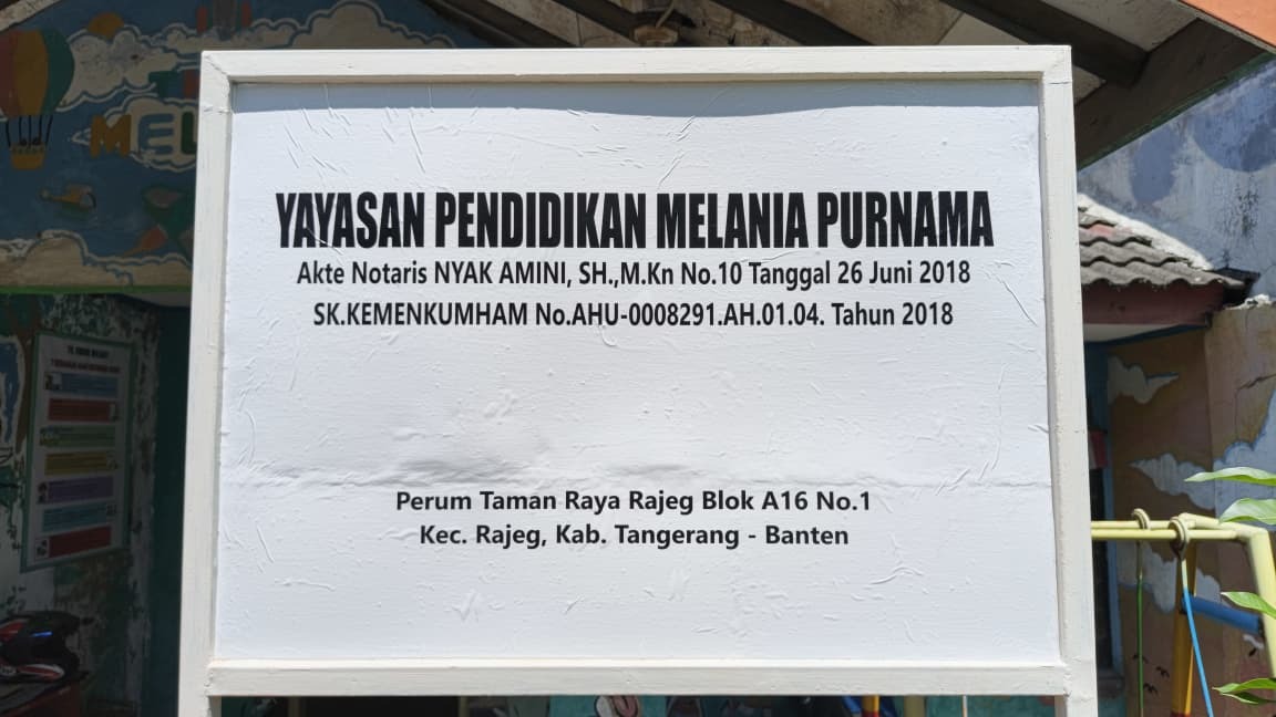 (AZ4394) YAYASAN PENDIDIKAN MELANIA PURNAMA Perum Taman Raya Rajeg Blok A 16 No 1, Mekarsari, Kec. Rajeg, Kabupaten Tangeran, -, Kec. Rajeg, Kab. Tangerang Prov. Banten