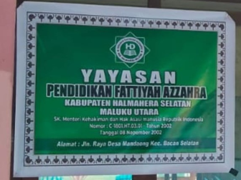 (AZ0505) YAYASAN PENDIDIKAN FATTIYAH AZZAHRA Jl. Bengteng Barnavel Labuha, -, Kec. Bacan Selatan, Kab. Halmahera Selatan Prov. Maluku Utara
