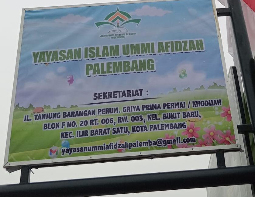 (AZ1977) YAYASAN ISLAM UMMI AFIDZAH PALEMBANG JL. TANJUNG BARANGAN PERUMAHAN GRIYA PRIMA PERMAI/KHODIJAH BLOK F.20 , -, Kec. Ilir Barat I, Kota Palembang Prov. Sumatera Selatan