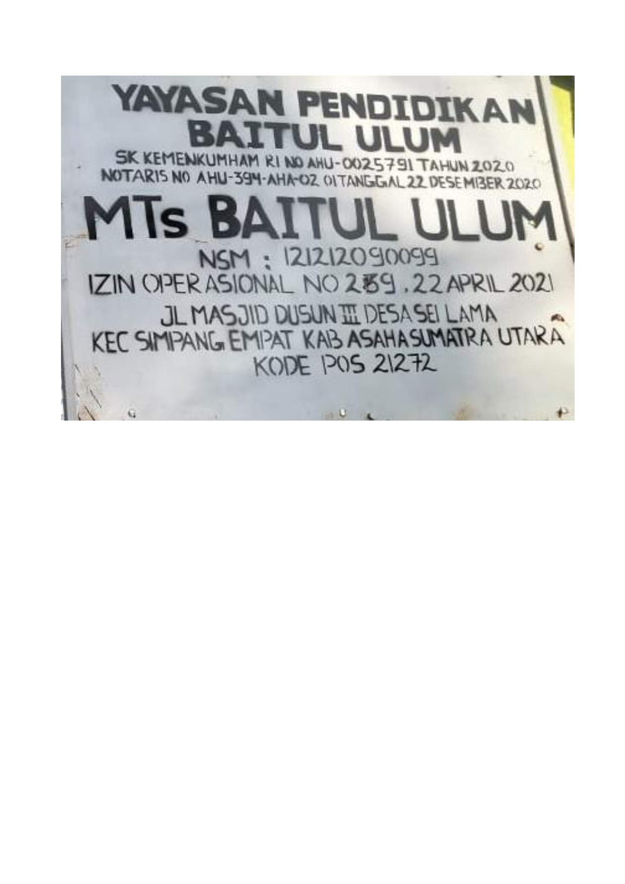 (AY0704) YAYASAN BAITUL ULUM SEI LAMA JALAN MASJID DUSUN III DESA SEI LAMA , -, Kec. Simpang Empat, Kab. Asahan Prov. Sumatera Utara