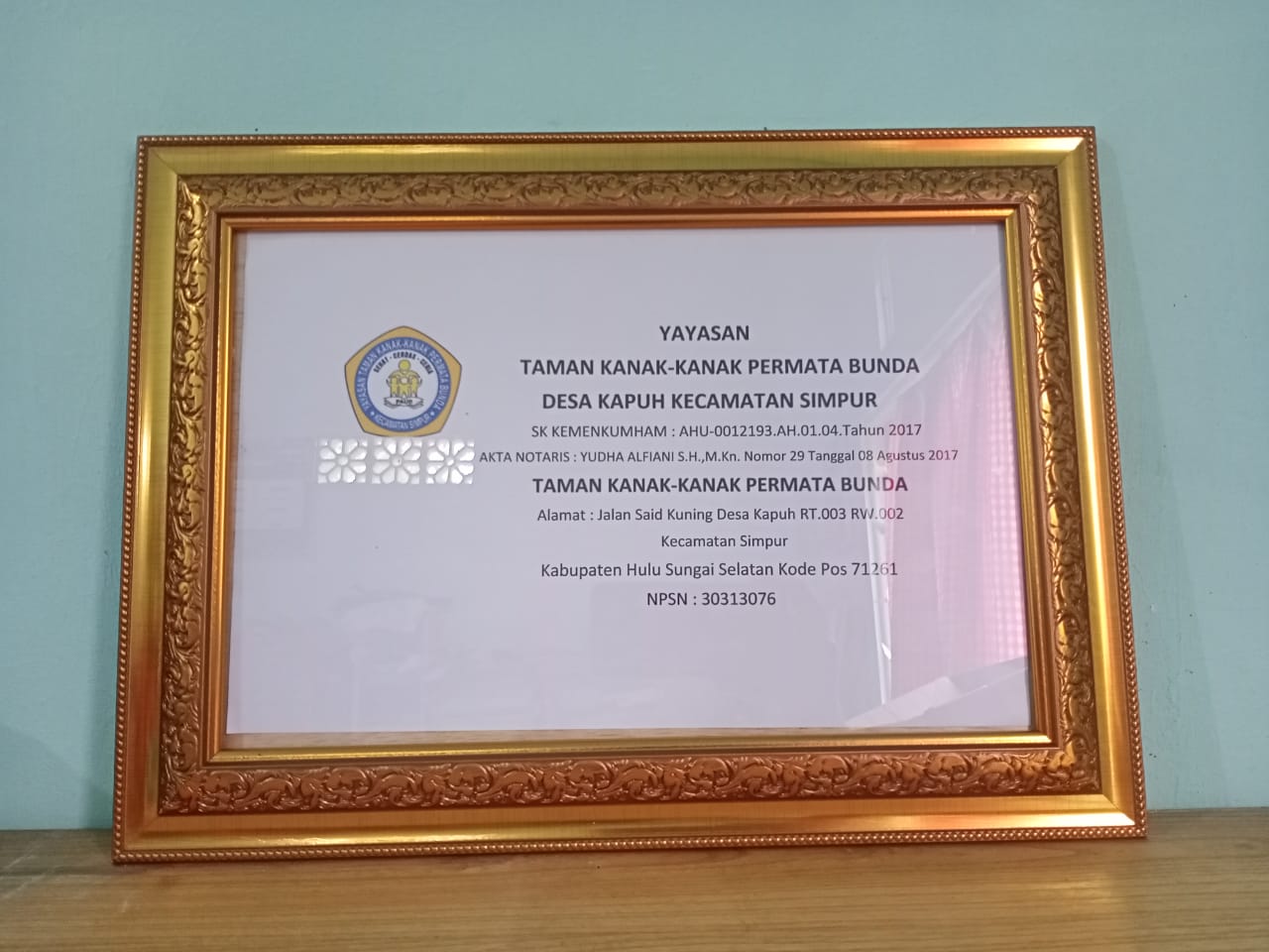 (AX5767) YAYASAN TAMAN KANAK-KANAK PERMATA BUNDA DESA KAPUH Jalan Said Kuning, -, Kec. Simpur, Kab. Hulu Sungai Selatan Prov. Kalimantan Selatan