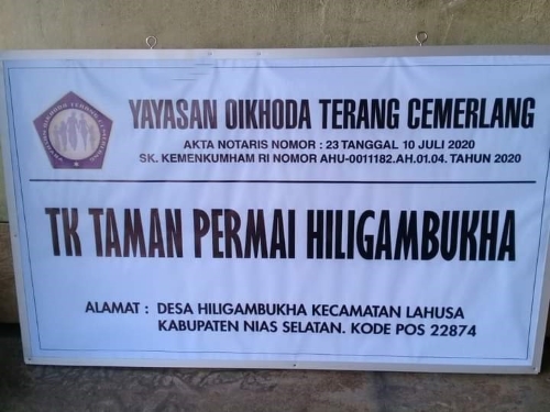 (AY0540) YAYASAN OIKHODA TERANG CEMERLANG Desa Hiligambukha, -, Kec. Lahusa, Kab. Nias Selatan Prov. Sumatera Utara