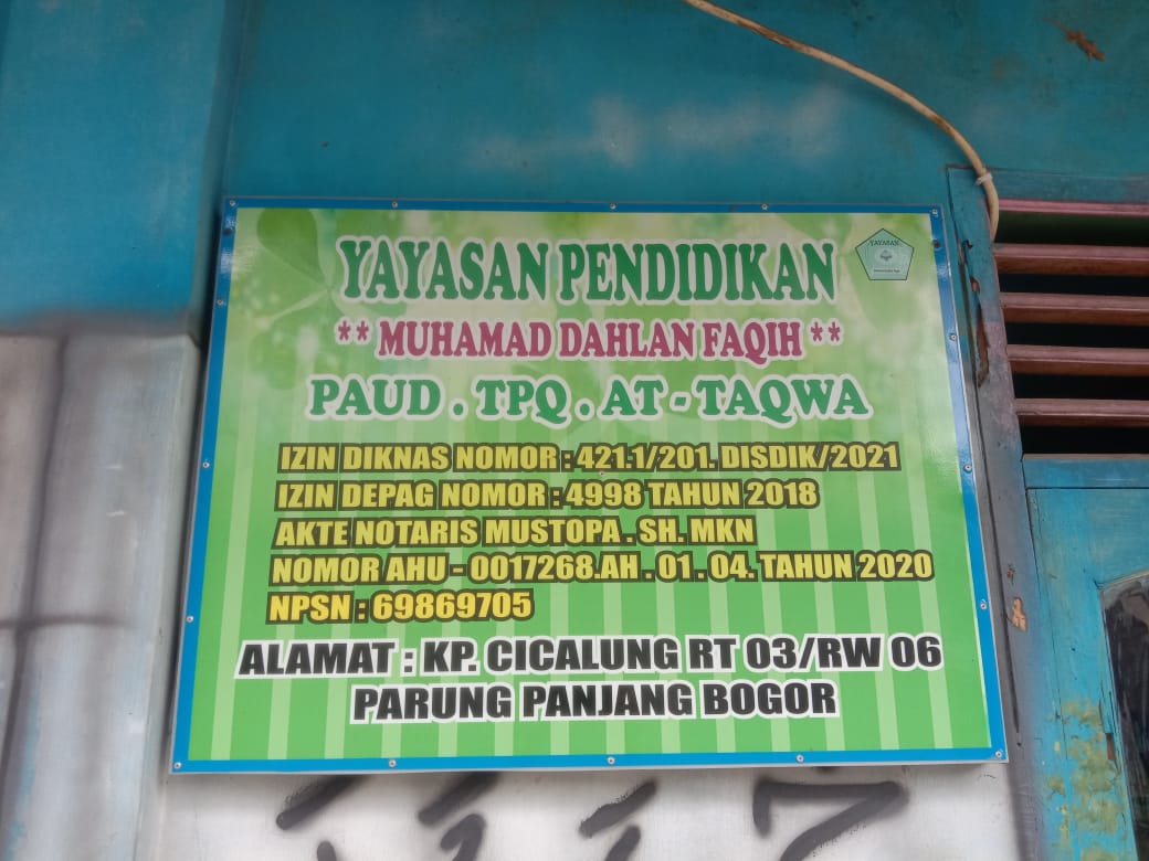 (AX2591) YAYASAN MUHAMAD DAHLAN FAQIH Kp. Cicalung, -, Kec. Parungpanjang, Kab. Bogor Prov. Jawa Barat