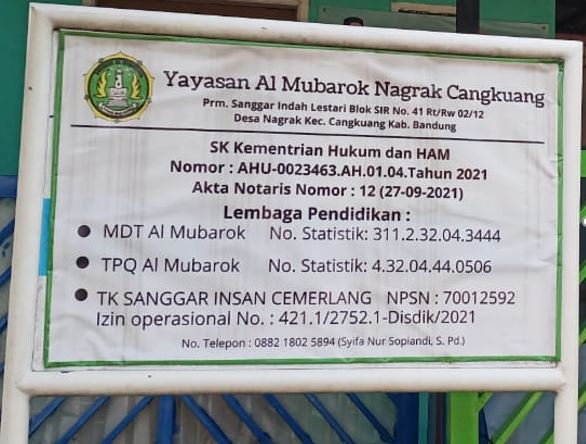 (AY5631) Yayasan Al Mubarok Nagrak Cangkuang Perumahan Sanggar Indah Lestari Blok SIR No.41, -, Kec. Cangkuang, Kab. Bandung Prov. Jawa Barat