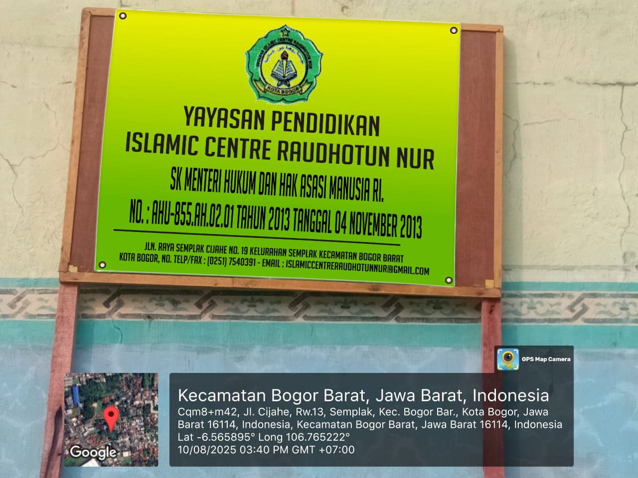 (AZ2289) YAYASAN ISLAMIC CENTRE RAUDHOTUNNUR JL. RAYA SEMPLAK CIJAHE NO. 19, -, Kec. Kota Bogor Barat, Kota Bogor Prov. Jawa Barat
