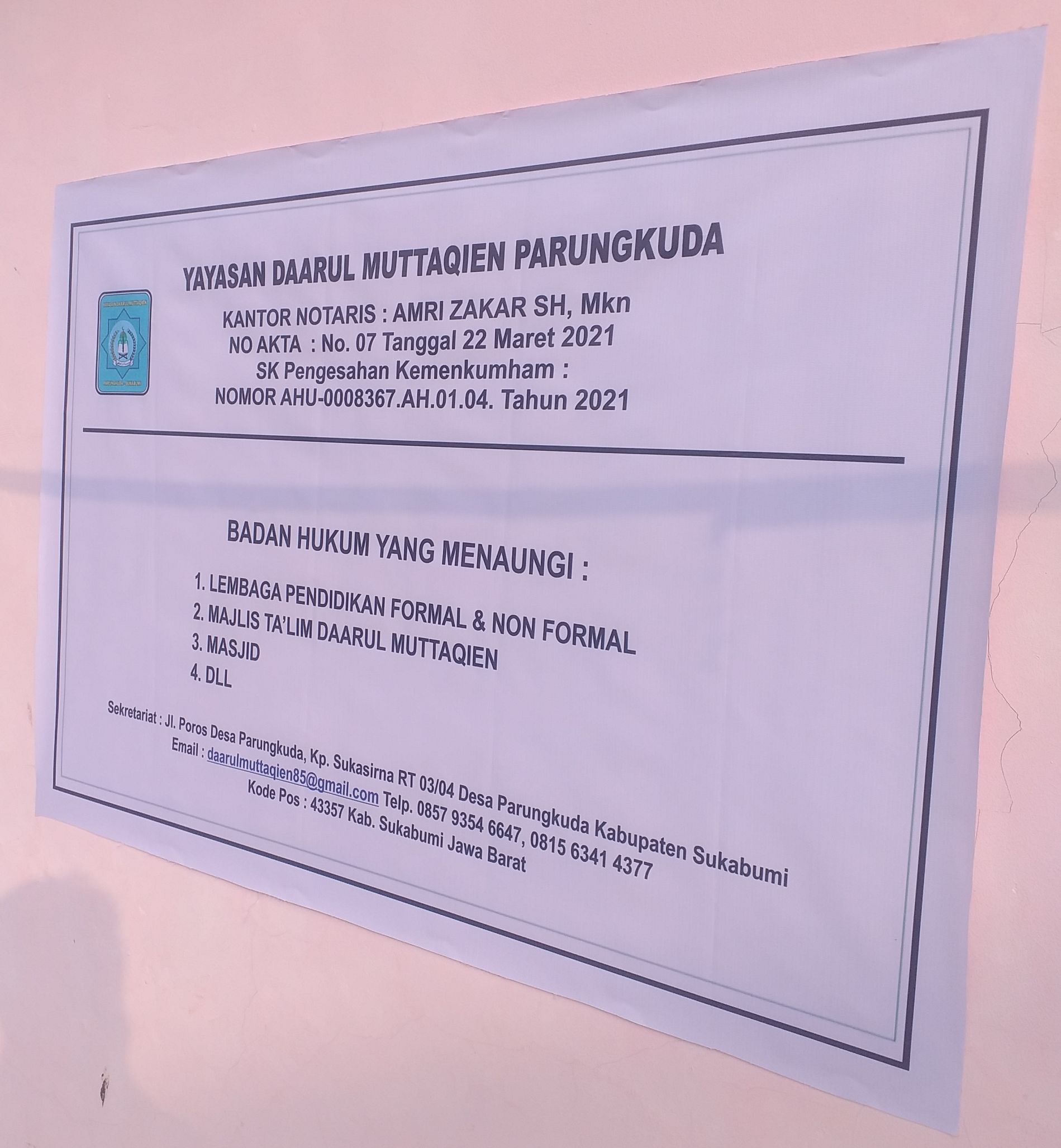 (AX3778) Yayasan Daarul Muttaqin Parungkuda Jl. Poros Kp. Sukasirna, -, Kec. Parungkuda, Kab. Sukabumi Prov. Jawa Barat