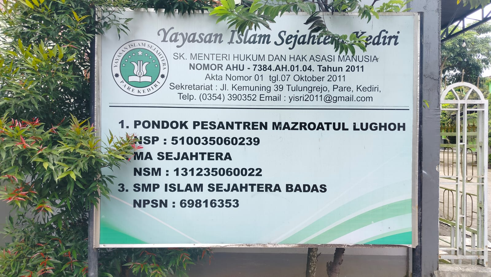 - No. Pendirian Yayasan : AHU-7384.AH.01.04.Tahun 2011