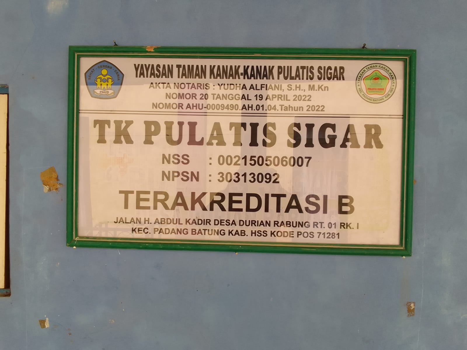 (AX7080) Yayasan TAMAN KANAK-KANAK PULATIS SIGAR JL. H. ABDUL KADIR, -, Kec. Padang Batung, Kab. Hulu Sungai Selatan Prov. Kalimantan Selatan