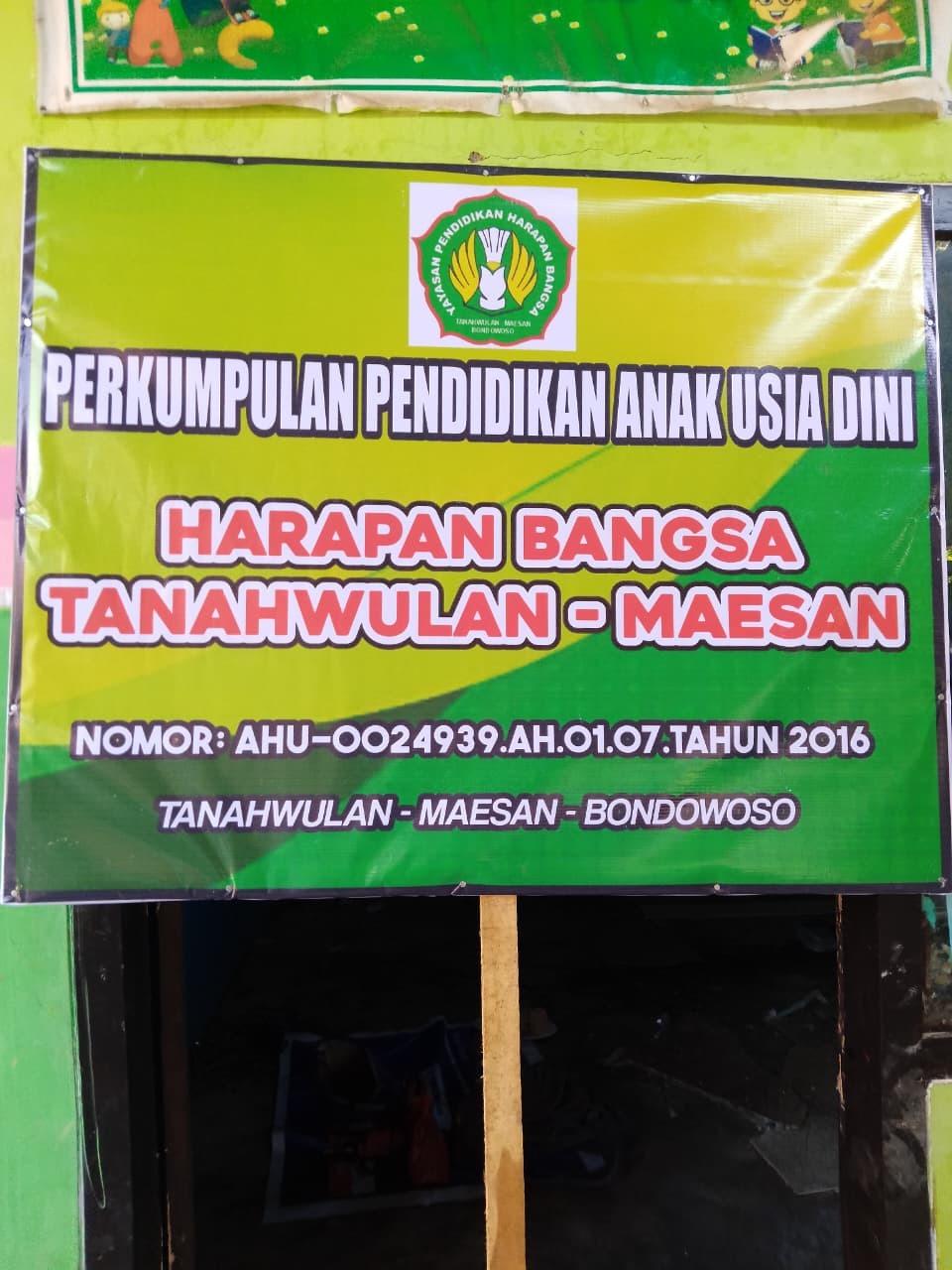 (AZ2720) PERKUMPULAN PENDIDIKAN ANAK USIA DINI HARAPAN BANGSA TANAH WULAN MAESAN Dusun Krajan I, -, Kec. Maesan, Kab. Bondowoso Prov. Jawa Timur