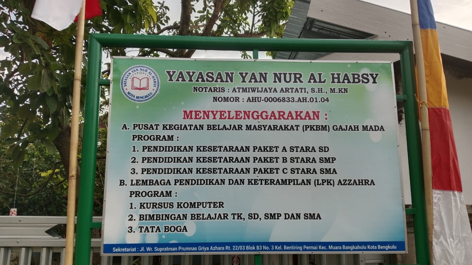(AZ2339) YAYASAN YAN NUR AL HABSY Jl. Wr supratman Prumnas Gria Azzahra Blok B 3 No 3, -, Kec. Muara Bangkahulu, Kota Bengkulu Prov. Bengkulu