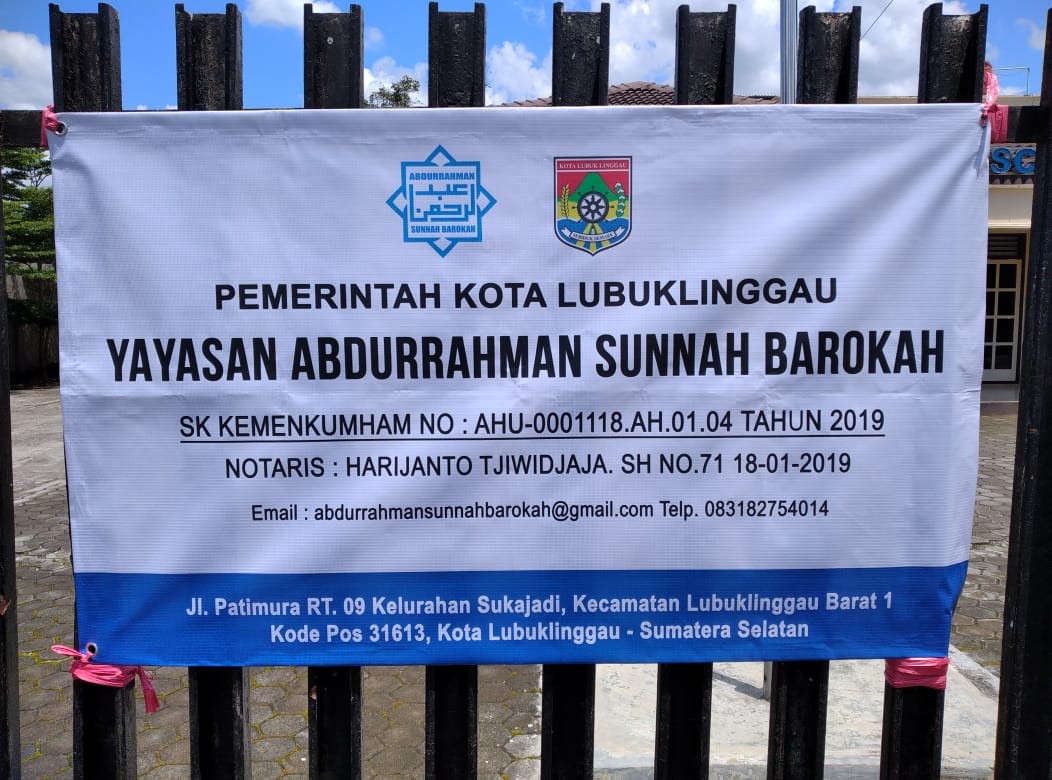 (AW9317) YAYASAN ABDURRAHMAN SUNNAH BAROKAH Jl. Patimura Rt. 09 Kelurahan Sukajadi Lubuklinggau, -, Kec. Lubuk Linggau Barat I, Kota Lubuk Linggau Prov. Sumatera Selatan