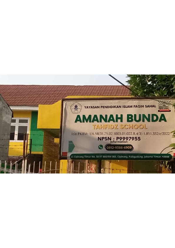 (AX5376) YAYASAN PENDIDIKAN ISLAM FAQIH SAHAL Jl. Cipinang Timur No. 58, -, Kec. Pulo Gadung, Kota Adm. Jakarta Timur Prov. D.K.I. Jakarta