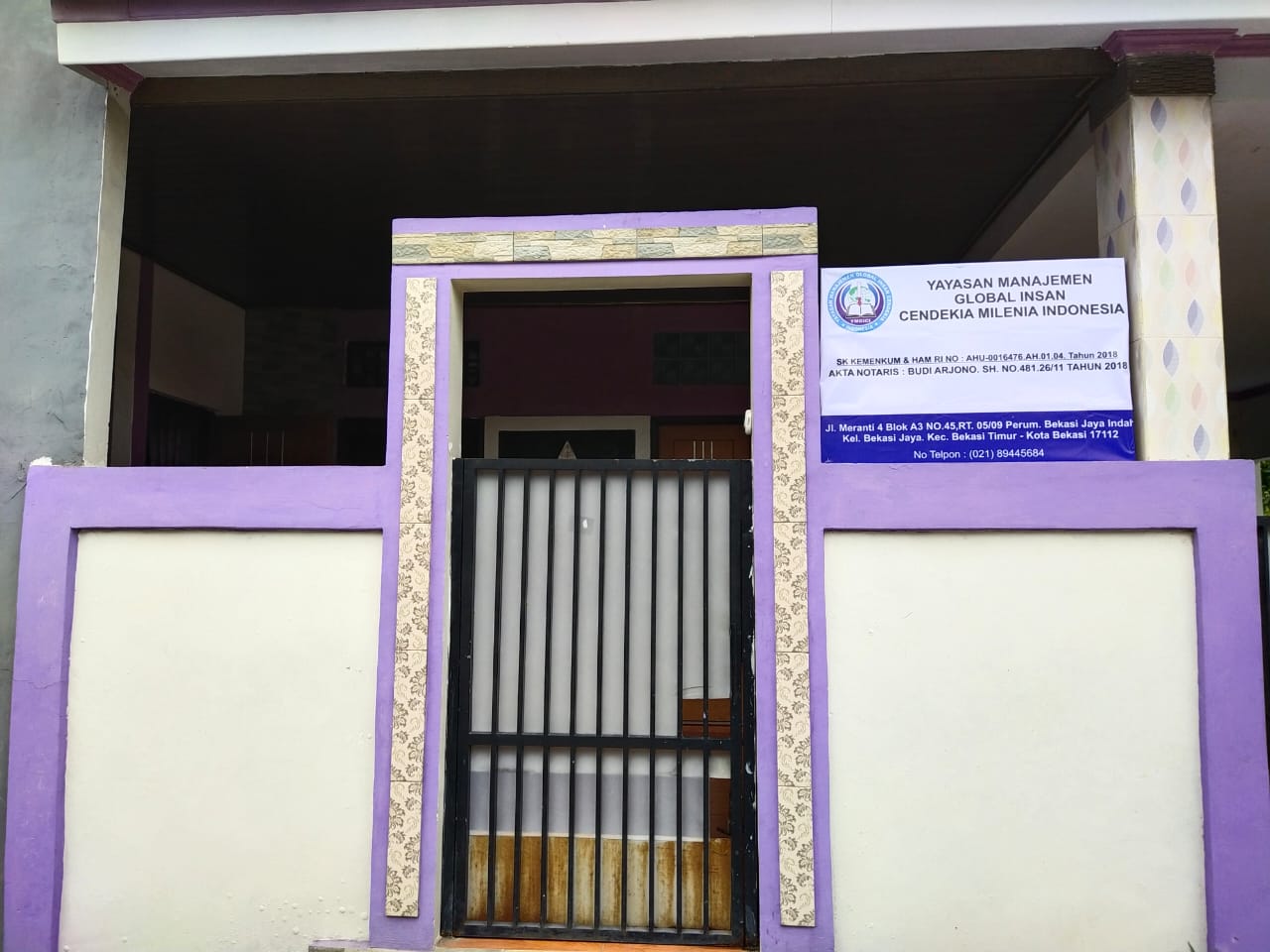 (AX1296) Yayasan Manajemen Global Insan Cendekia Milenia Indonesia Jl. Meranti 4 Blok A3 No 45, -, Kec. Bekasi Timur, Kota Bekasi Prov. Jawa Barat