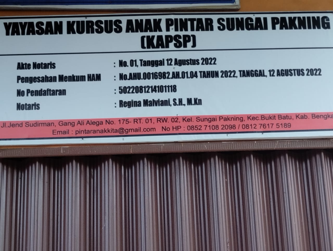 - No. Pengesahan PN LN : AHU-0016982.AH.01.04.Tahun 2022